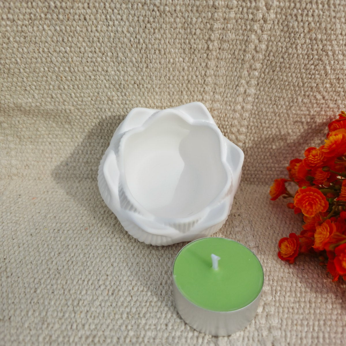 Puedes usarla sola como elemento decorativo, o colocar en el centro una vela de té para crear un rincón de luz suave y relajante. Sea como sea, su forma elegante y su acabado artesanal la convierten en una pieza única que aporta paz visual y armonía al espacio.