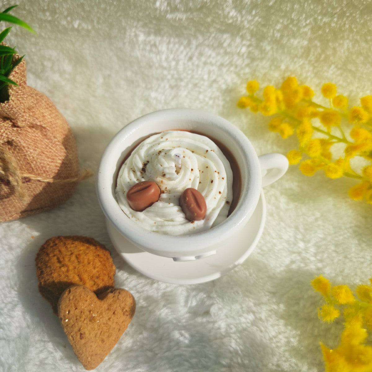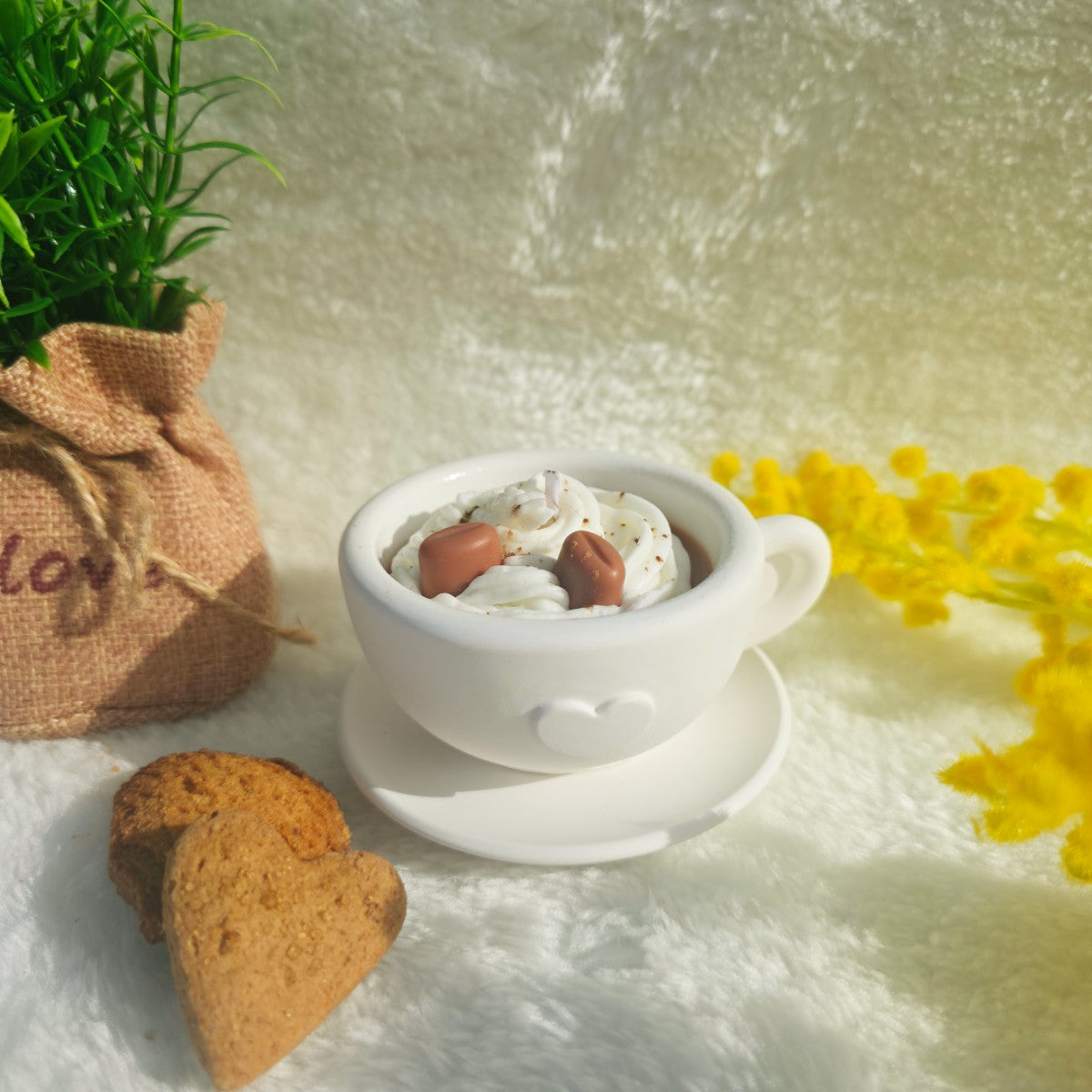 Su forma de taza con platito hace que no solo huela increíble, sino que también decore con encanto cualquier rincón.